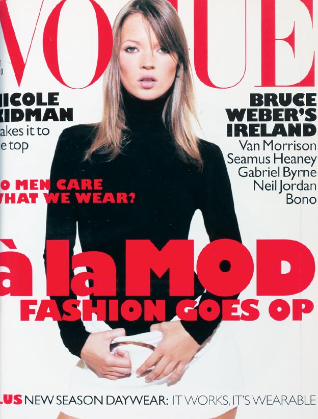 Moss na okładce brytyjskiego Vogue zadebiutowała w marcu 1993 roku, na skromnym zdjęciu ówczesnej przyjaciółki Corinne Day. Tchnienie nowej mody, czytamy na okładce i rzeczywiście, zaczynała się rewolucja w modelingu. Obok pięknych supermodelek – Cindy, Claudii, Naomi i innych, w magazynach mody i na wybiegach znalazło się miejsce dla piękna mniej oczywistego, uciekającego od kanonu 90-60-90. A najbardziej intrygująca z nowych okazała się właśnie Moss.